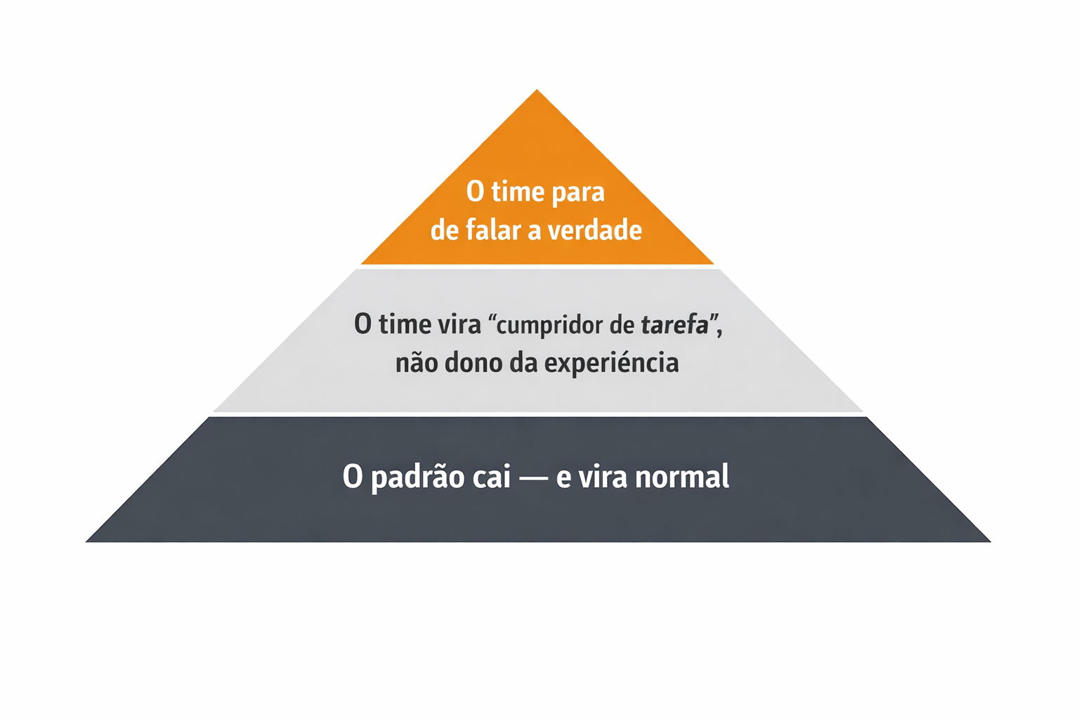 E quando ninguém traz a verdade, o cliente vira o primeiro a sentir. - O time vira “cumpridor de tarefa”, não dono da experiência