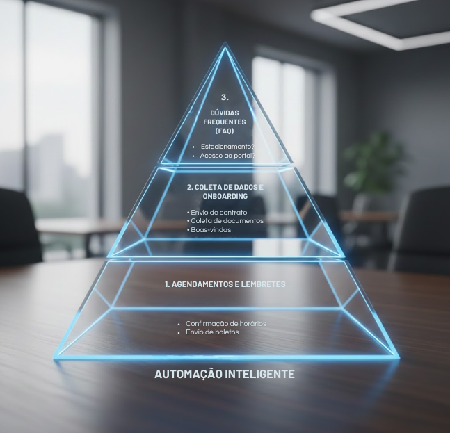 Se alguém do seu time gasta o dia confirmando horários ou enviando boletos, você está desperdiçando inteligência humana. Isso é 100% automatizável.